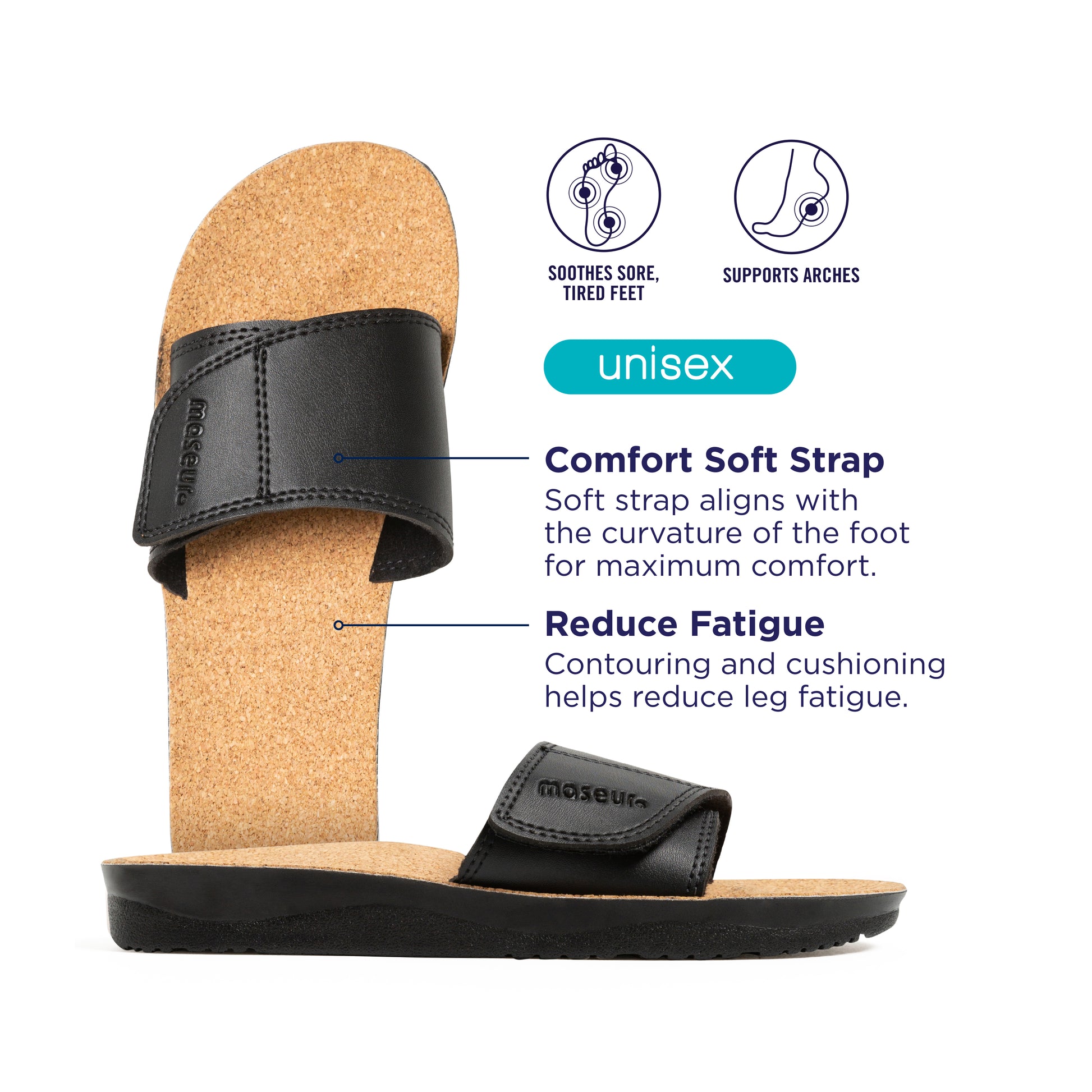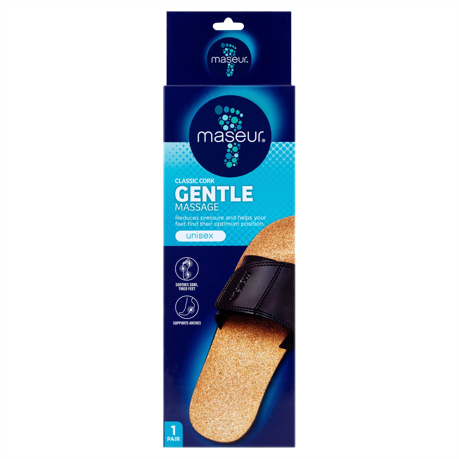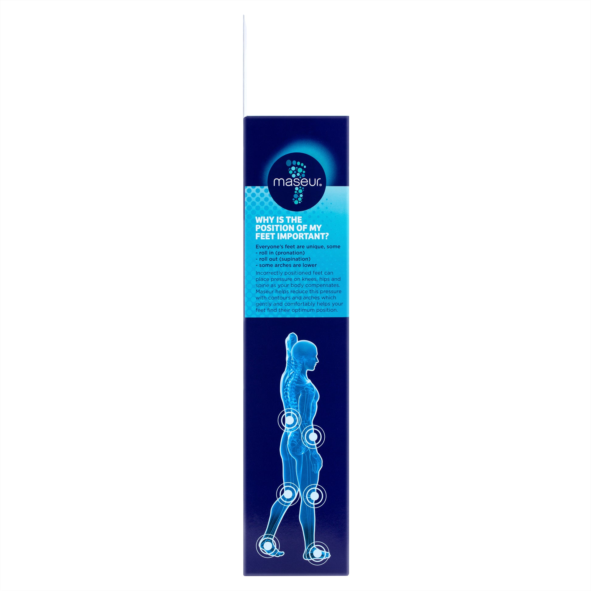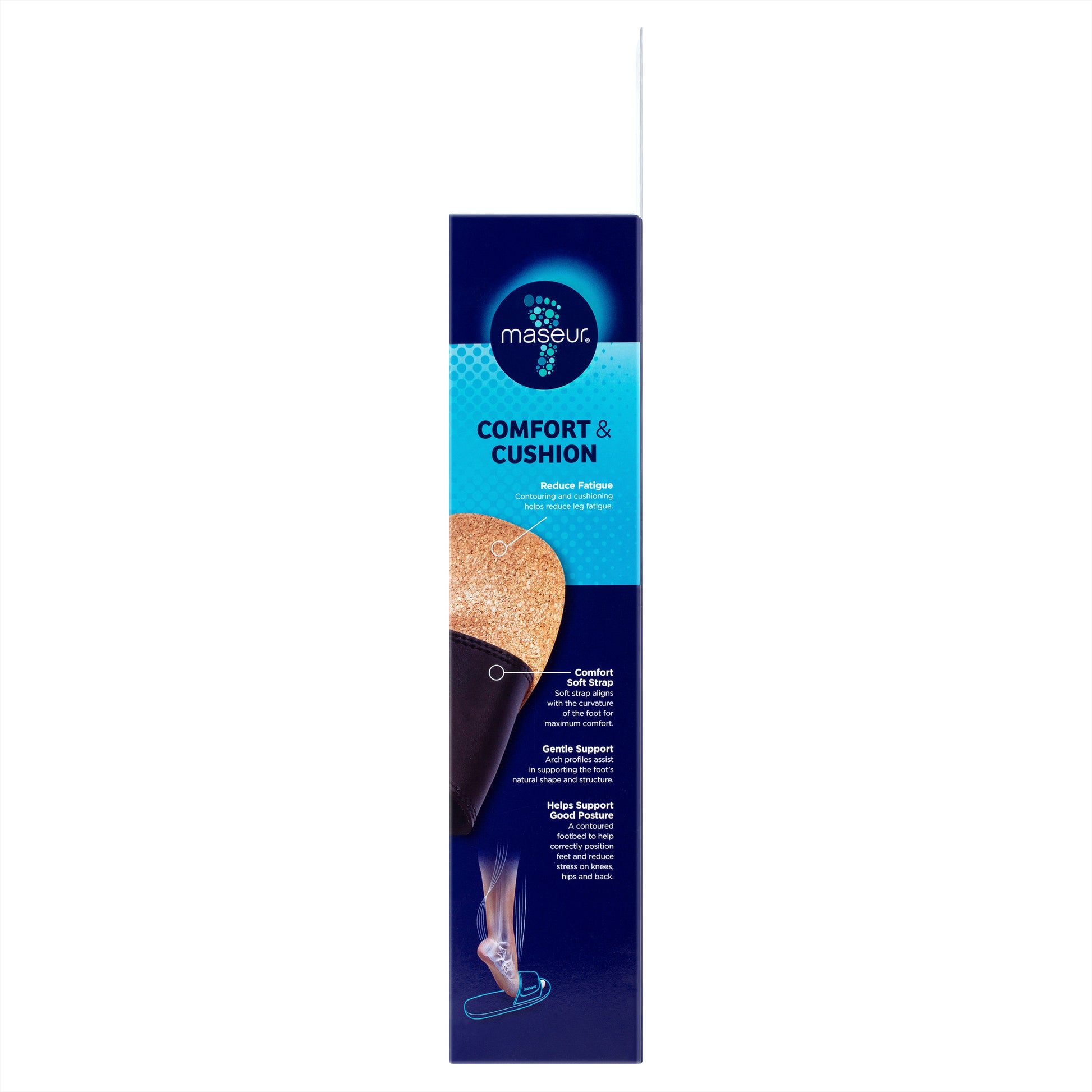 maseur® helps promote healthy posture, balance and alignment. The unique contoured footbed provides support for arches, heels and toes and helps correctly position feet to relieve pressure on the knees, hips and back.